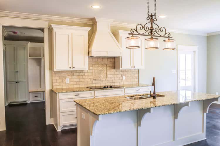 Upon entering you step into a great room with sight-lines through to the kitchen and rear porch — this open layout maximizes the footprint and supports modern living. 5 The kitchen features a large island with seating and a walk-in pantry, allowing functional flow for cooking, dining and socialising. 6