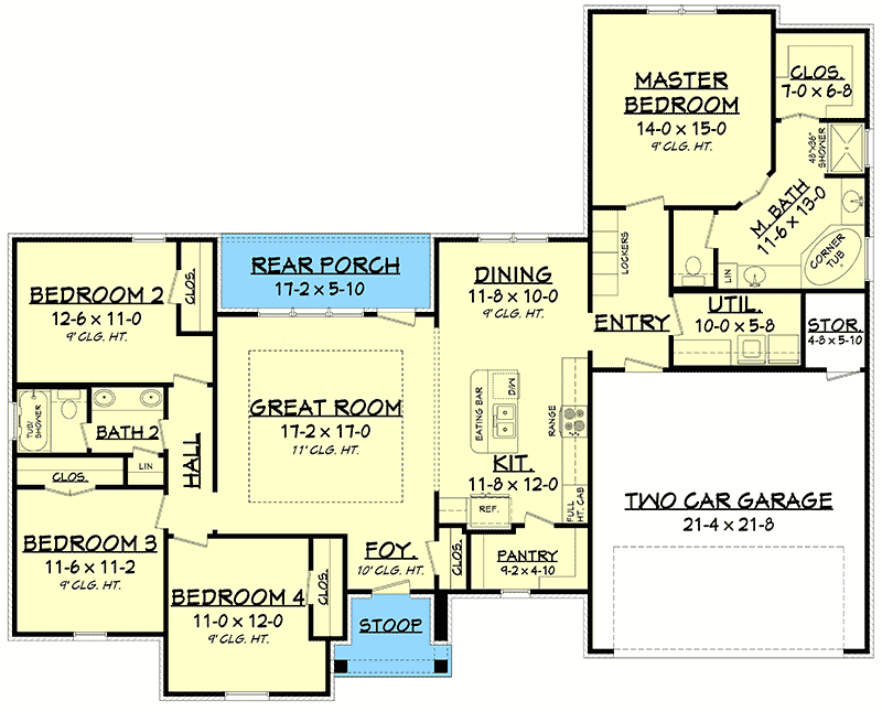 Storage (walk-in pantry, large master closet) and practical bath layout make it livable long‐term.