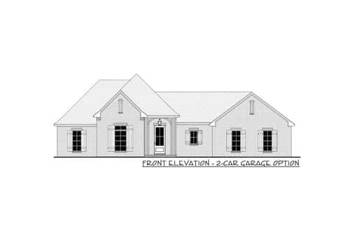 There is a covered front porch or entry space (depending on elevation options) and the drawing shows either a front-entry two-car garage or an alternate side‐entry two-car garage option.