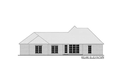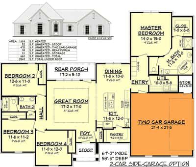 This house plan is a single‐story, four-bedroom, two-bath home covering approximately 1,889 square feet of heated living space.