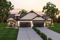 Good for extended family living: one unit for parents, one for children, with shared wall but separate entries and garages.