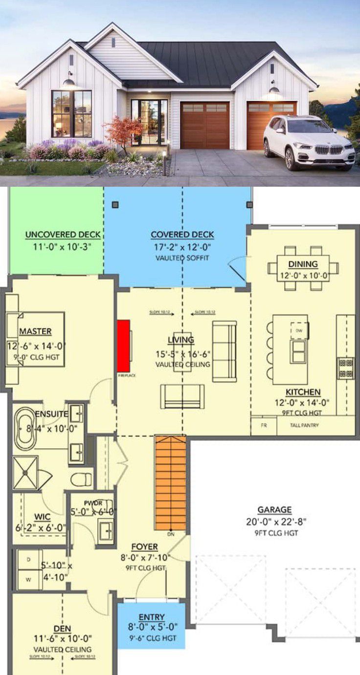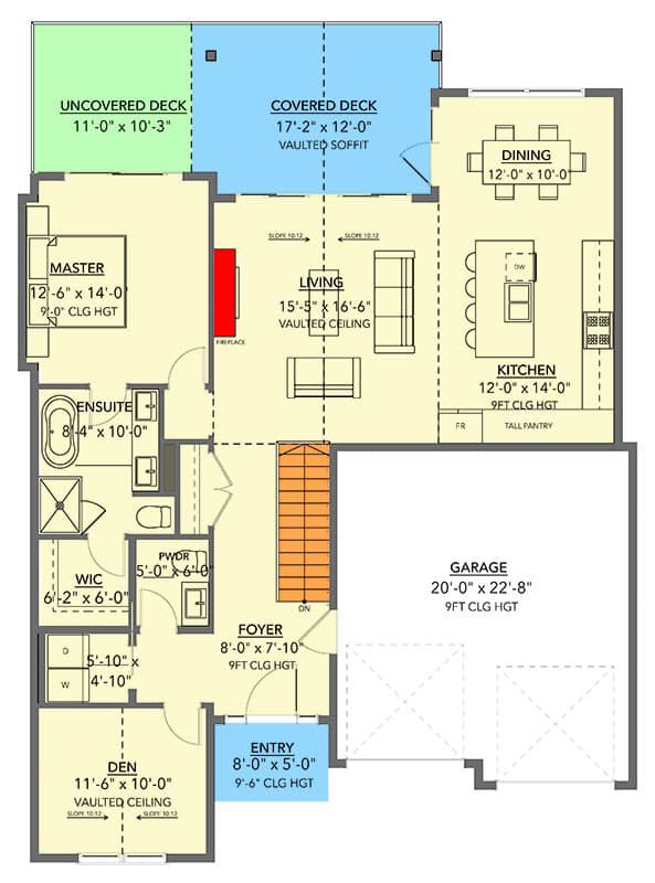 The cottage-style design conveys warmth with mixed roof pitches (primary 6:12, secondary 10:12) and exterior walls framed with 2×6 construction.