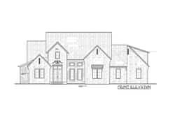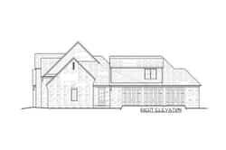 The roof pitch is steep on the primary roof (12:12) and gentler on secondary sections (4:12) which gives an interesting roofscape. The side-entry 3-car garage keeps the front facade cleaner and gives more flexibility for landscaping out front.