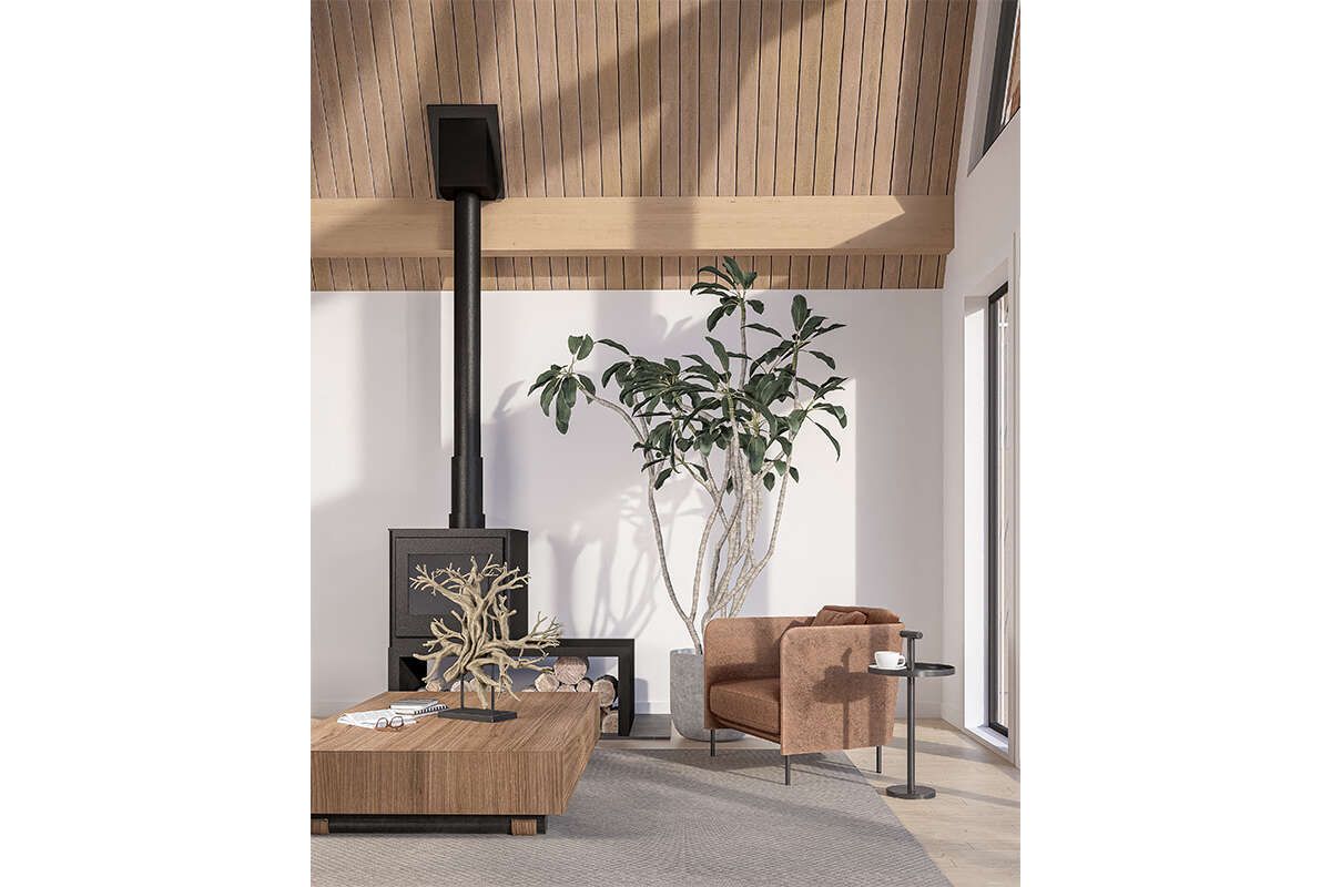 This A-frame house plan offers a unique blend of architectural character, efficient space usage, and cozy living. Its vertical design, loft spaces, and open interior make it an excellent choice for those seeking a distinctive and functional home with timeless appeal.