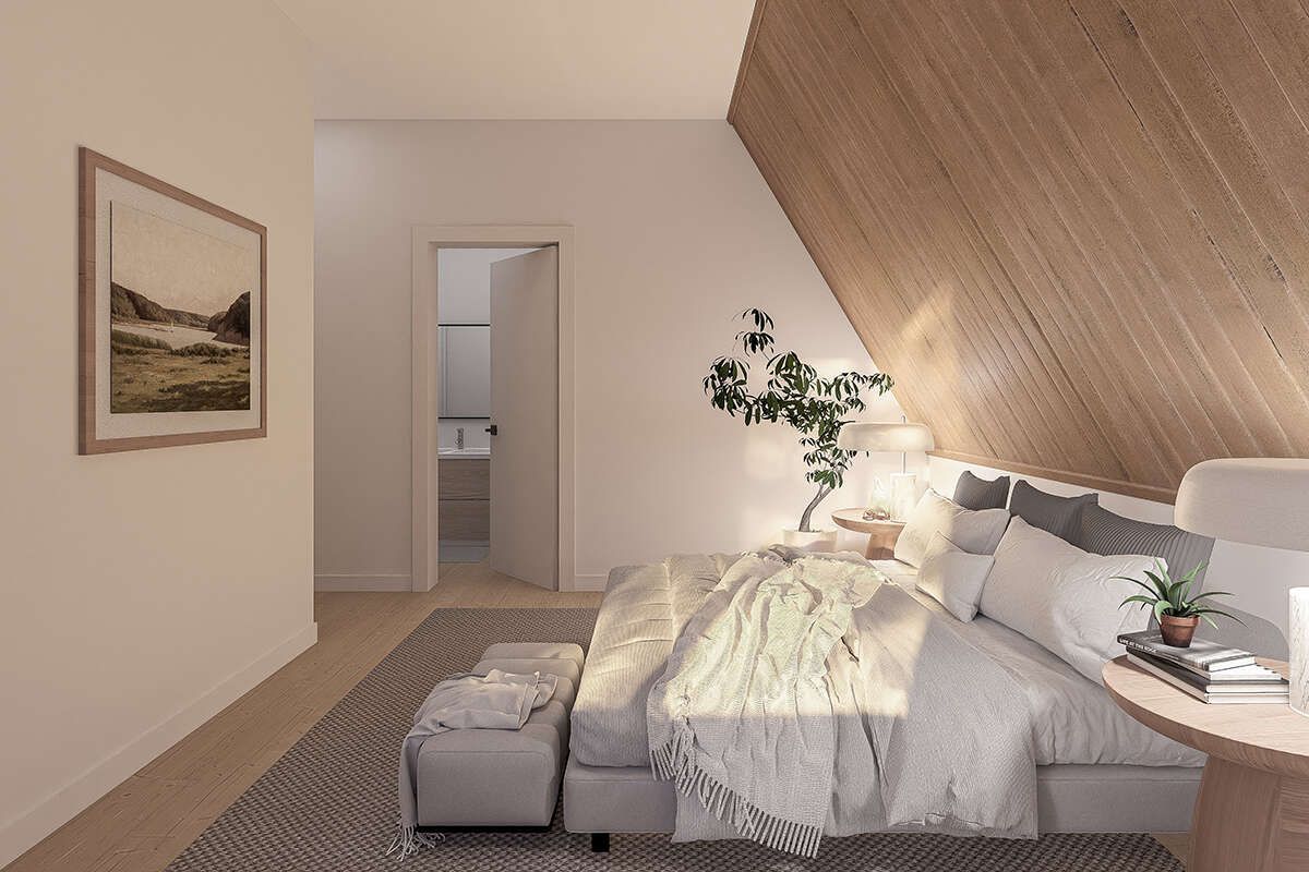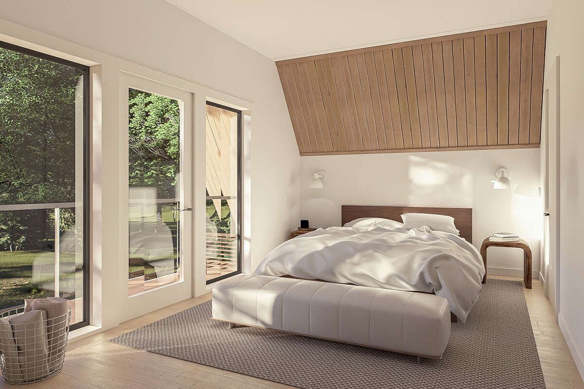 The additional bedrooms are located on upper levels, taking advantage of the home’s vertical design. These rooms are perfect for family members or guests and often feature unique ceiling lines that add character.
