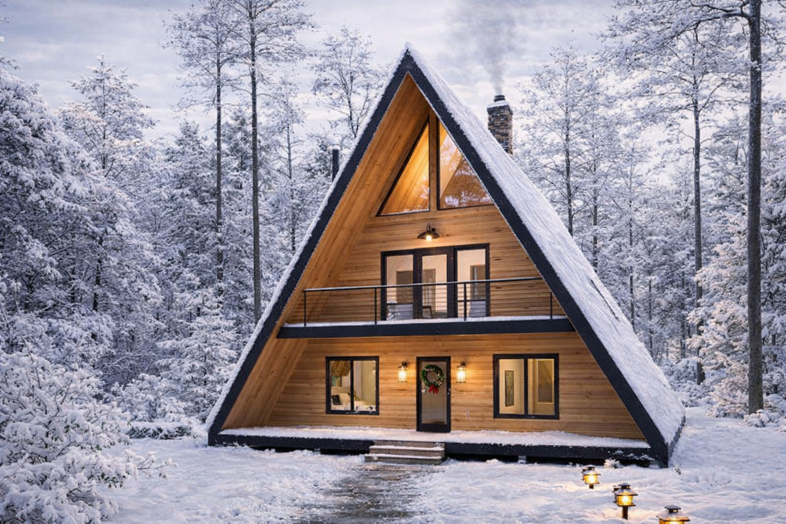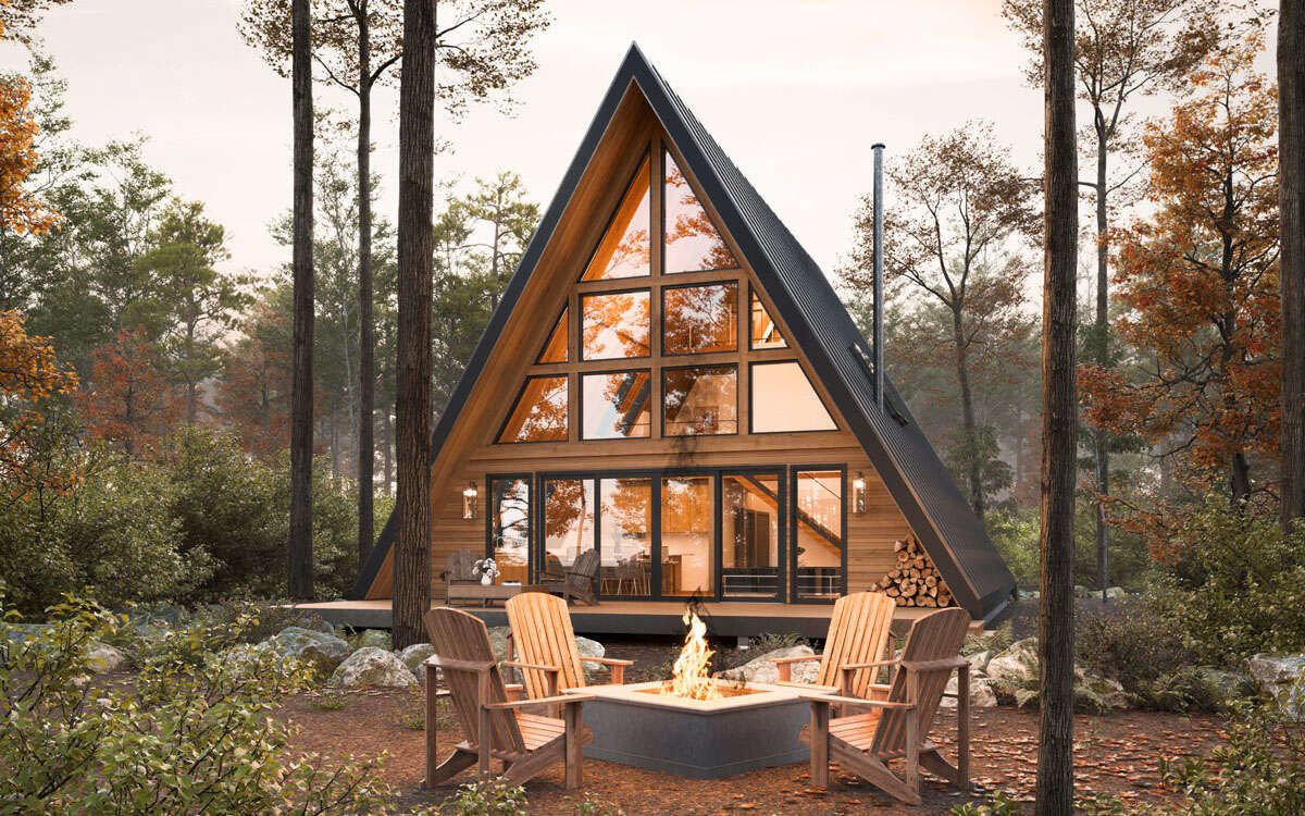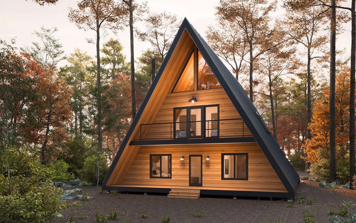 This design is not only visually distinctive but also highly practical. The steep roof angle helps shed rain and snow efficiently, while large front-facing windows are often incorporated to maximize natural light and scenic views.