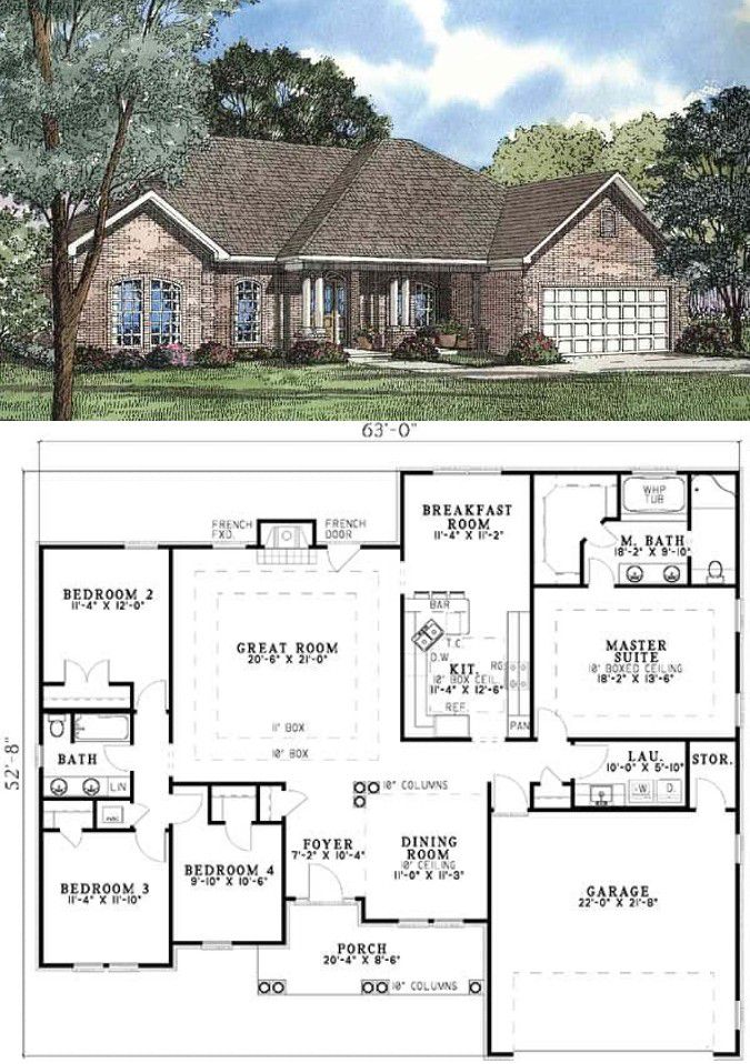 - Design Style: Traditional, split-bedroom layout, open living core, modest footprint — great for comfortable, manageable family living. 0