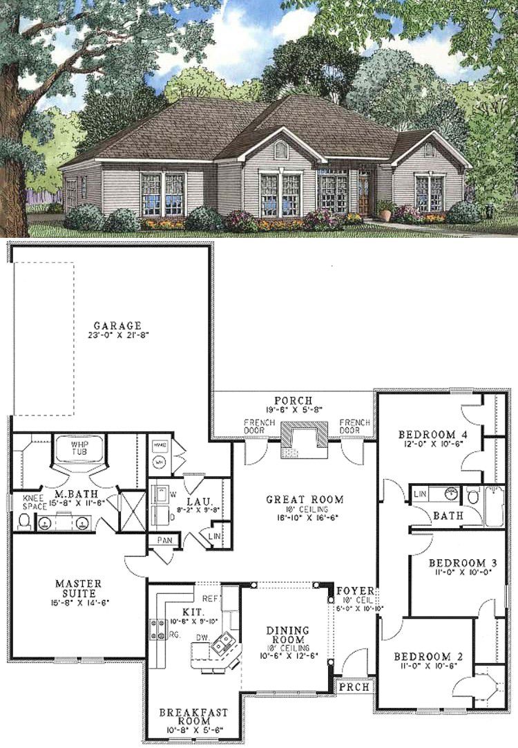 - Design Features: Split-bedroom layout, fireplace in great room, formal dining framed by columns, rear porch access, master suite with dual walk-in closets and whirlpool tub. 14