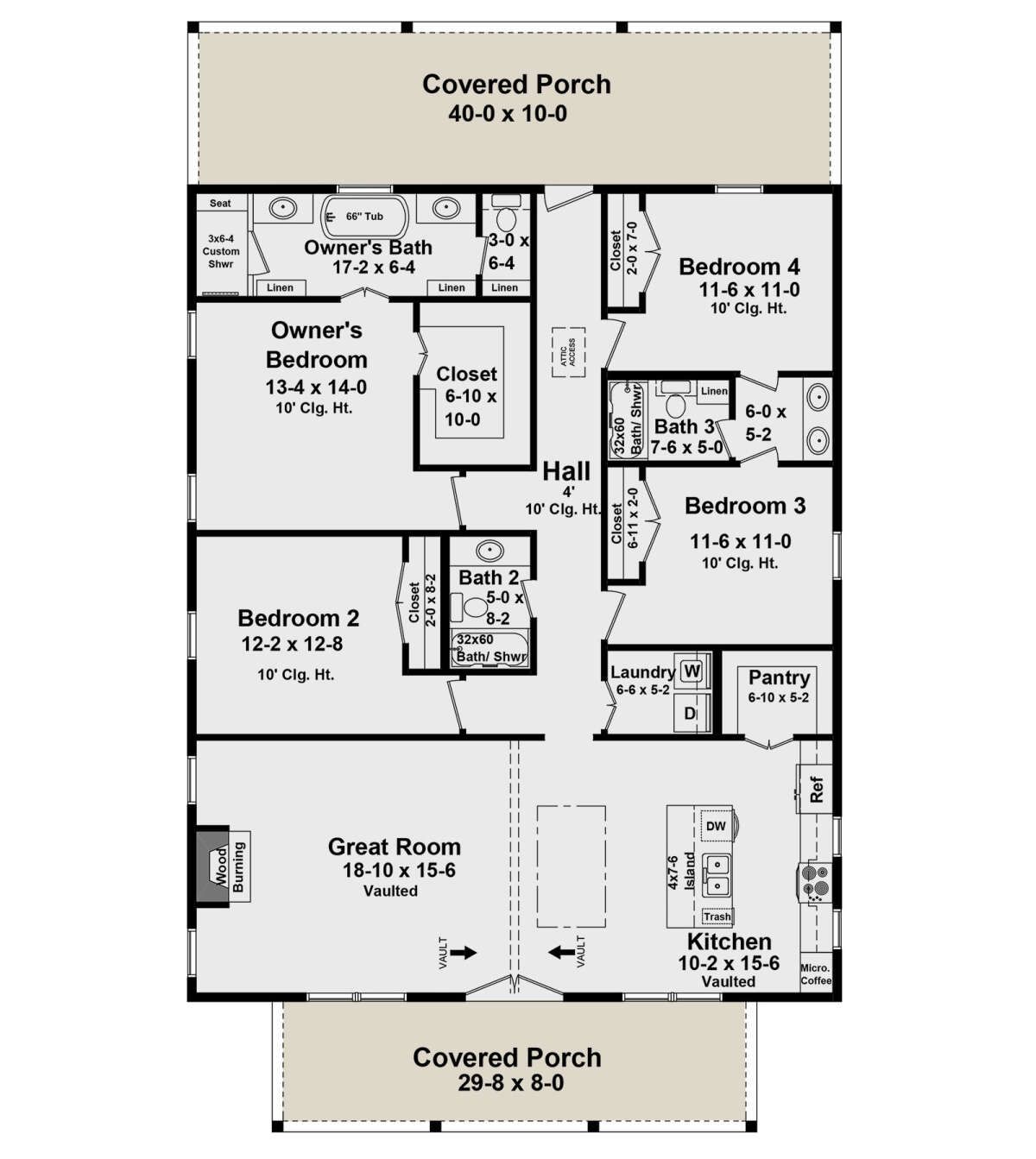 This plan includes both front and rear porches, extending the living space outdoors. 5
