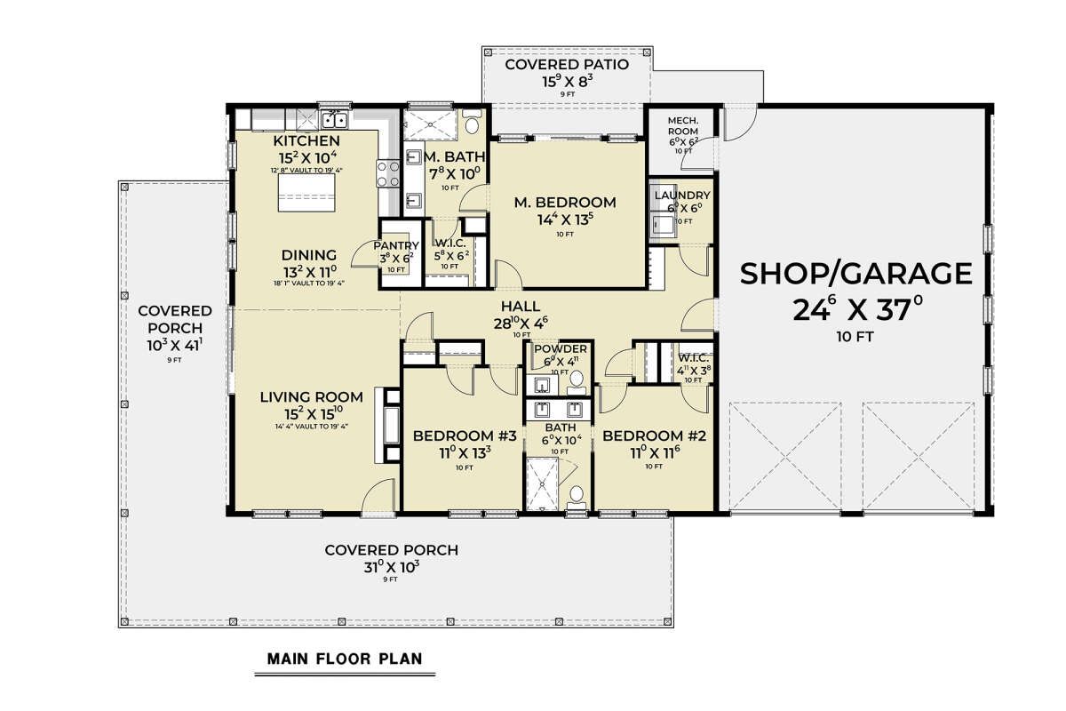The kitchen offers practical counter space and cabinetry for everyday cooking, while its location adjacent to the dining zone encourages ease of movement and interaction. Counter seating or a kitchen island can support casual dining and entertaining. ([houseplans.net](https://www.houseplans.net/floorplans/246400186/barn-plan-1668-square-feet-3-bedrooms-2.5-bathrooms))
