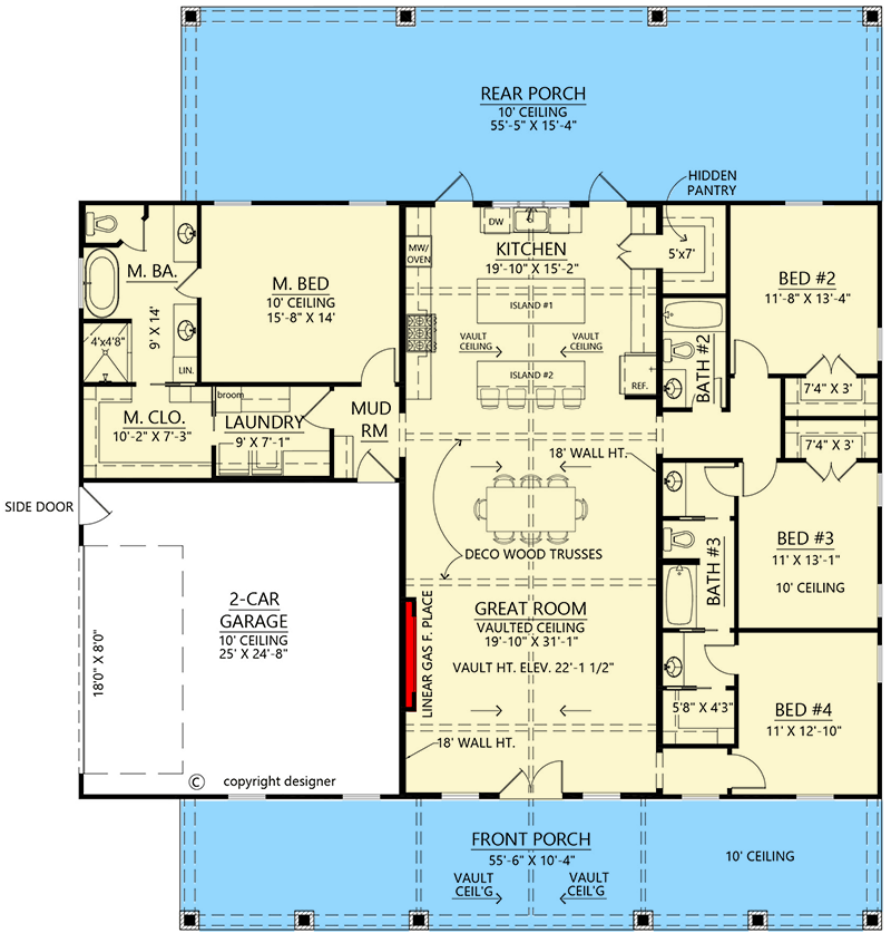 With four bedrooms and three full baths, this layout accommodates a family comfortably, or provides flexibility for guests, home office use, or other needs. 4