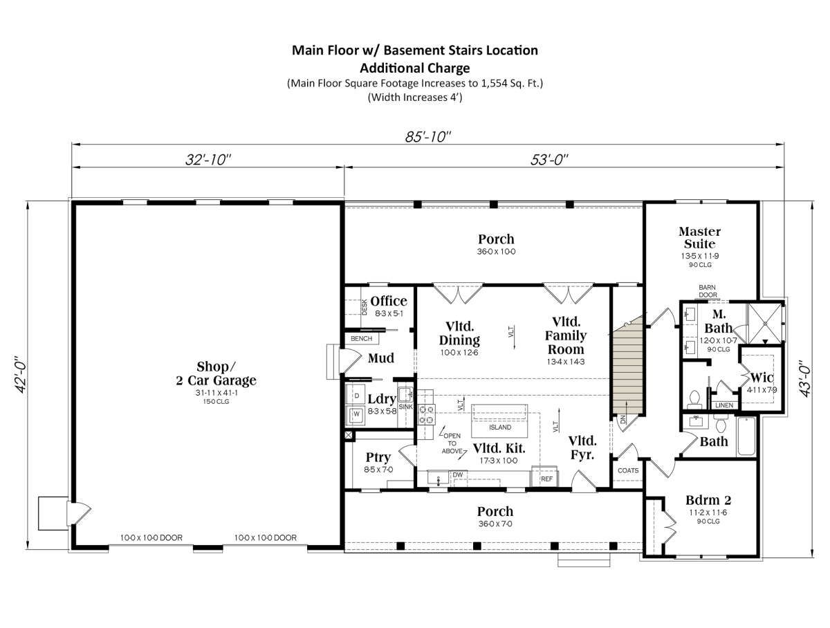 The home is designed as a one-story structure with a total heated area of 1,454 square feet. Barndominiums are commonly constructed using either traditional wood framing or metal building systems, offering flexibility in construction methods depending on preferences and location. 4