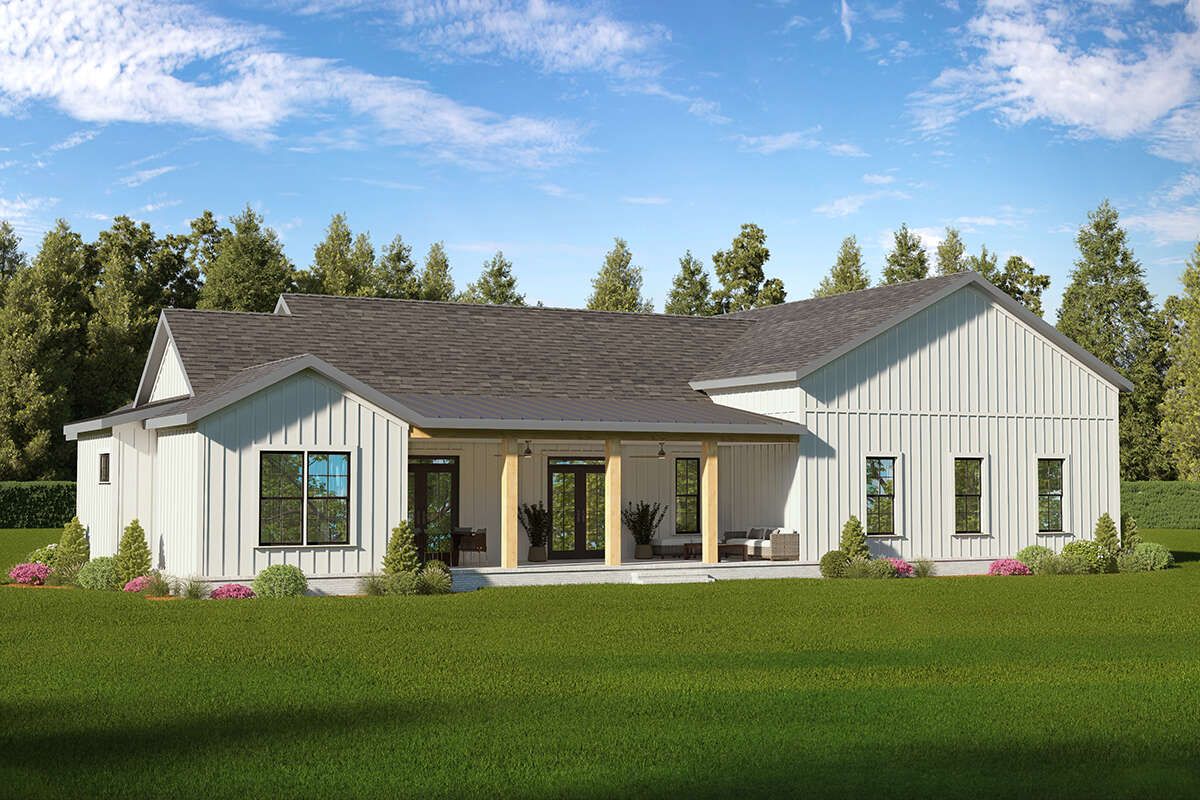 This barndominium house plan offers a unique blend of rustic charm and modern efficiency. Its open layout, practical bedroom arrangement, and integrated workspace make it a highly functional and appealing choice for homeowners seeking something different from traditional home designs.