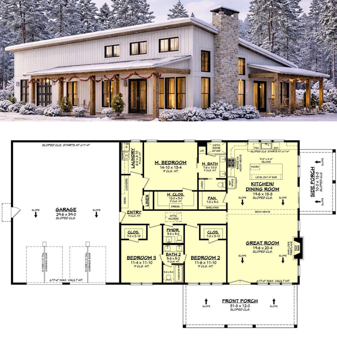 Spacious Barndominium House Plan – 2,000 Sq Ft, 3 Bedrooms, 2.5 Bathrooms