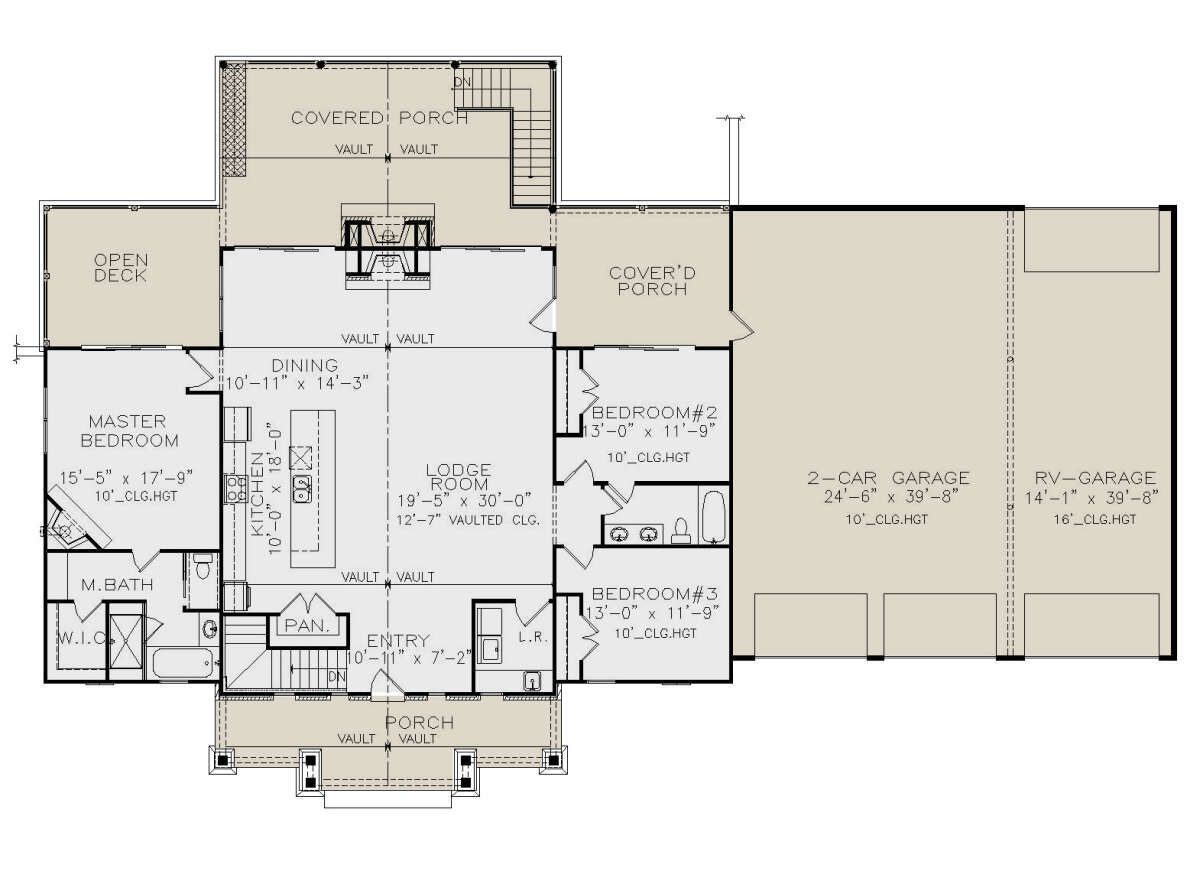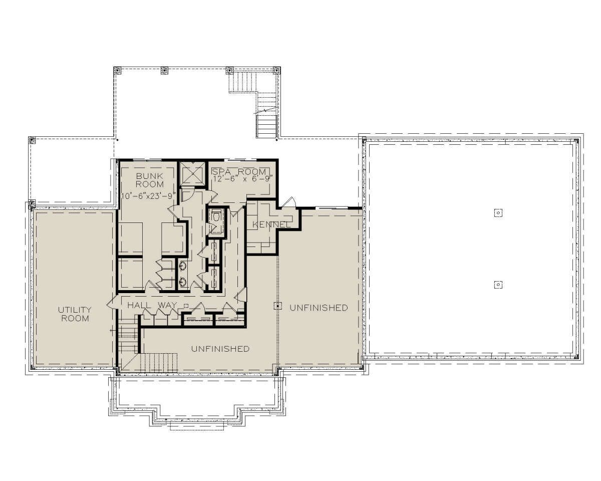 A major highlight of barndominium living is the flexibility for oversized garage or workshop space. This plan allows room for vehicle storage, tools, hobby work, or business use depending on the homeowner’s needs.