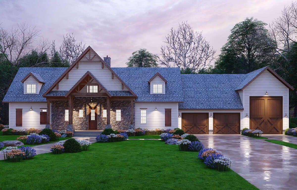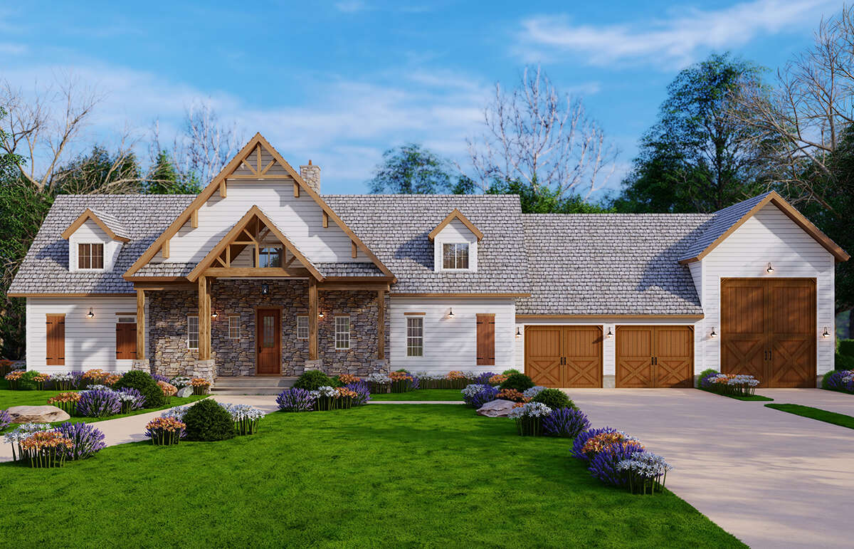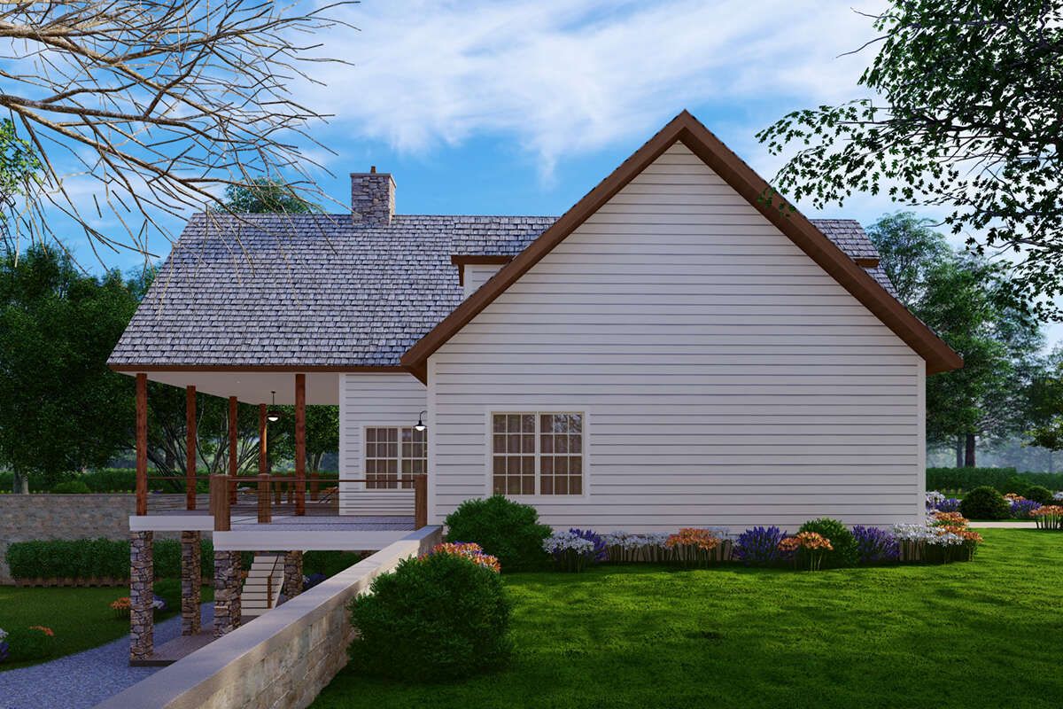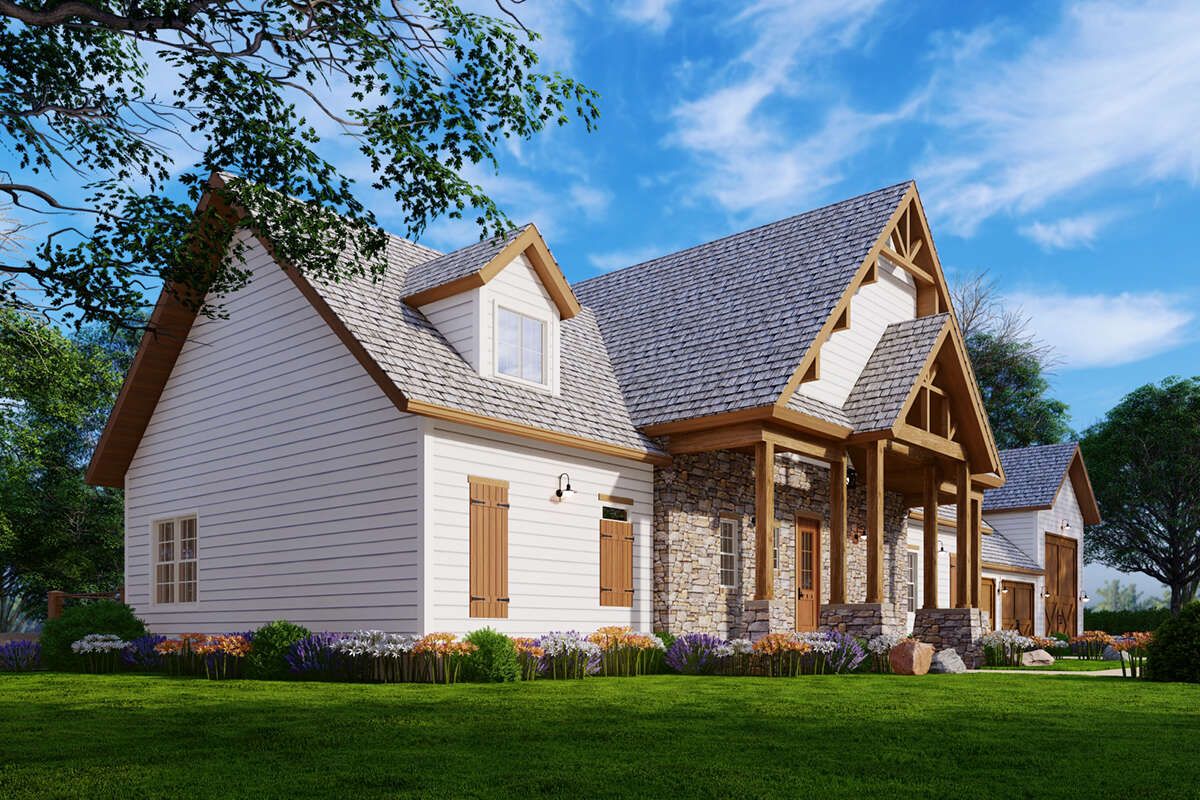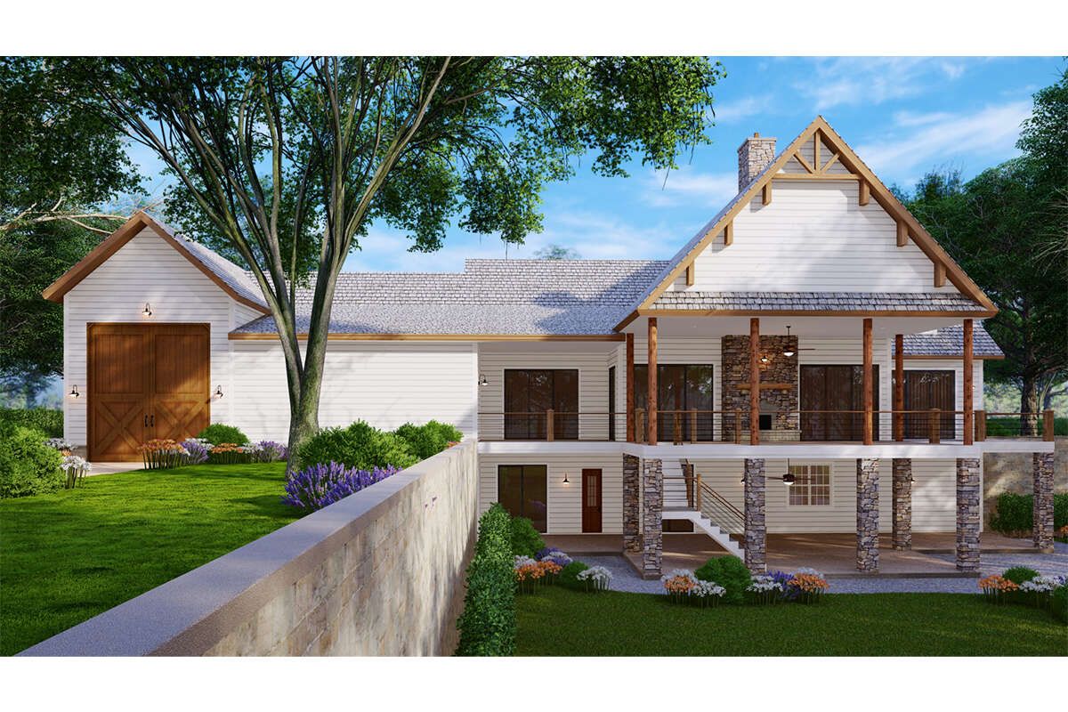 Covered porch spaces extend the living area outdoors, creating ideal places for relaxing, grilling, or enjoying outdoor views.