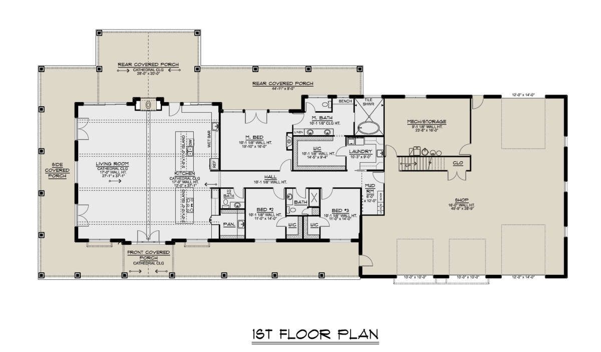This barndominium house plan offers a perfect combination of space, durability, and modern comfort. With its expansive layout, flexible living areas, and workshop potential, it is an excellent choice for building a unique and highly functional dream home.