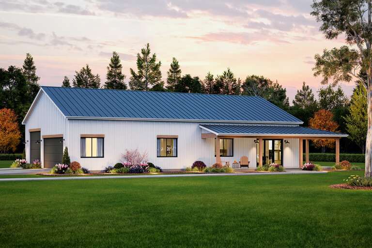 This barndominium plan proves you can get style, comfort, and real functionality without building huge. With three bedrooms, two bathrooms, and an open main living layout designed for connection, it delivers everything most households need in a footprint that stays practical and easy to maintain. It’s warm, flexible, family-friendly, and full of that relaxed rustic charm that makes barndominium living so appealing.