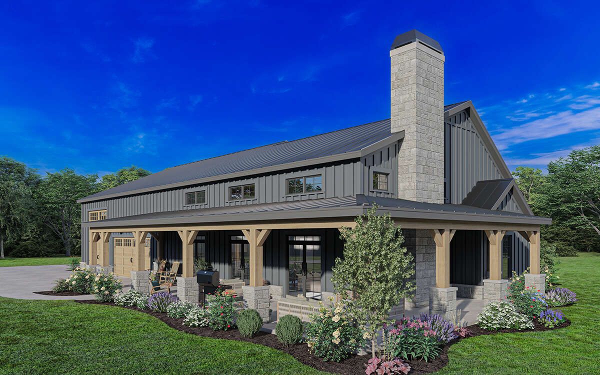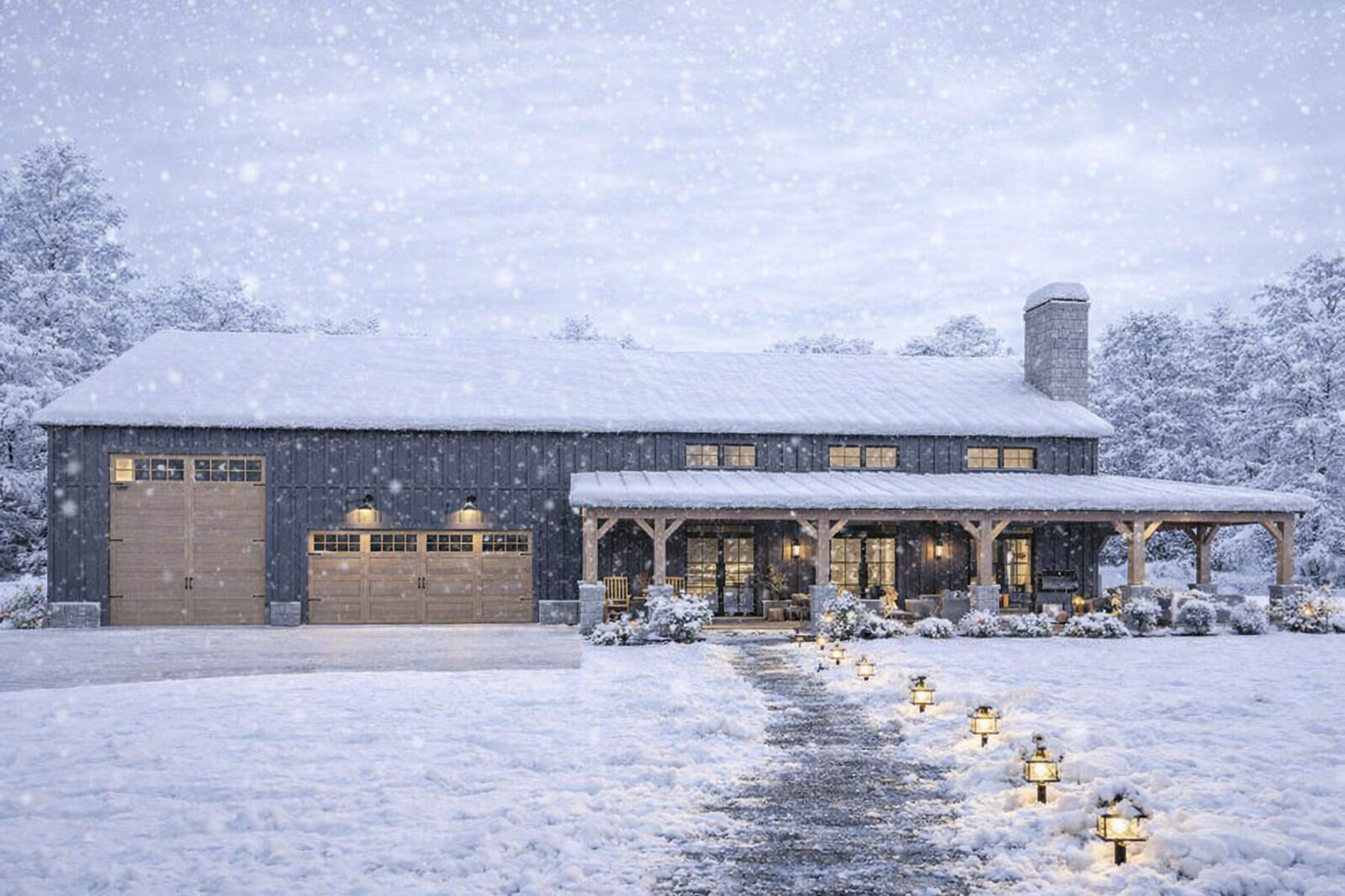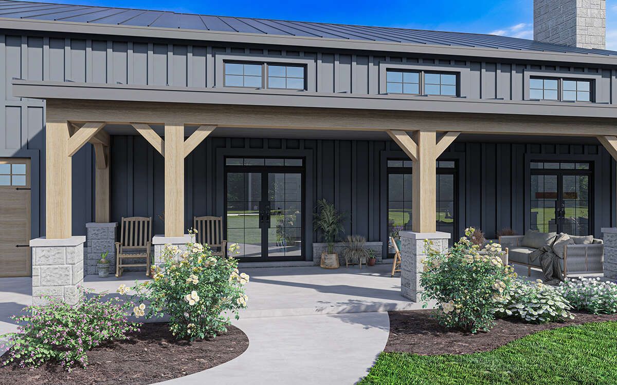 A welcoming front porch enhances the home’s curb appeal while providing a comfortable outdoor space for relaxing or entertaining. 2 The 5:12 roof pitch adds a balanced profile, blending durability with modern barn-style aesthetics. 3