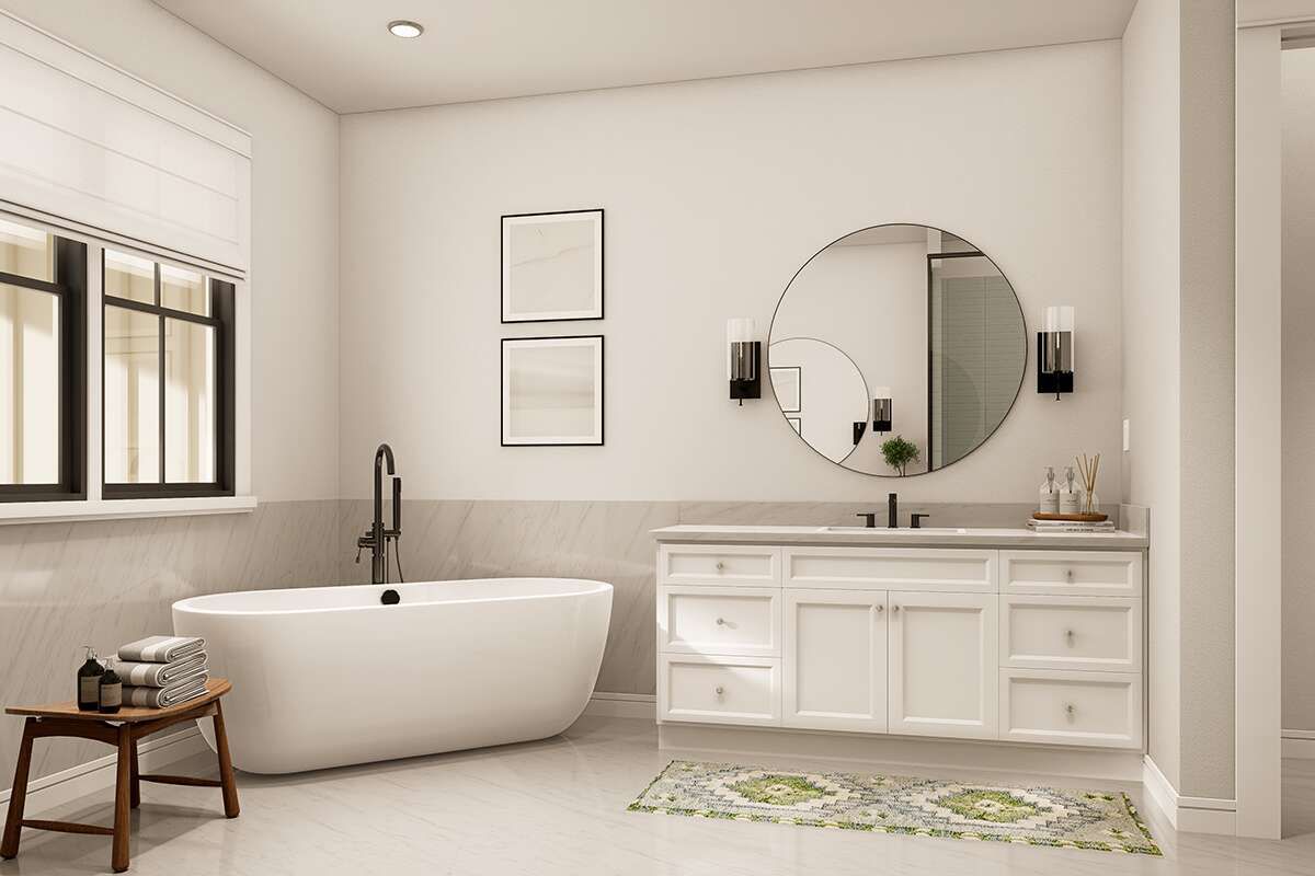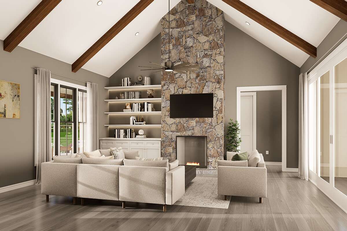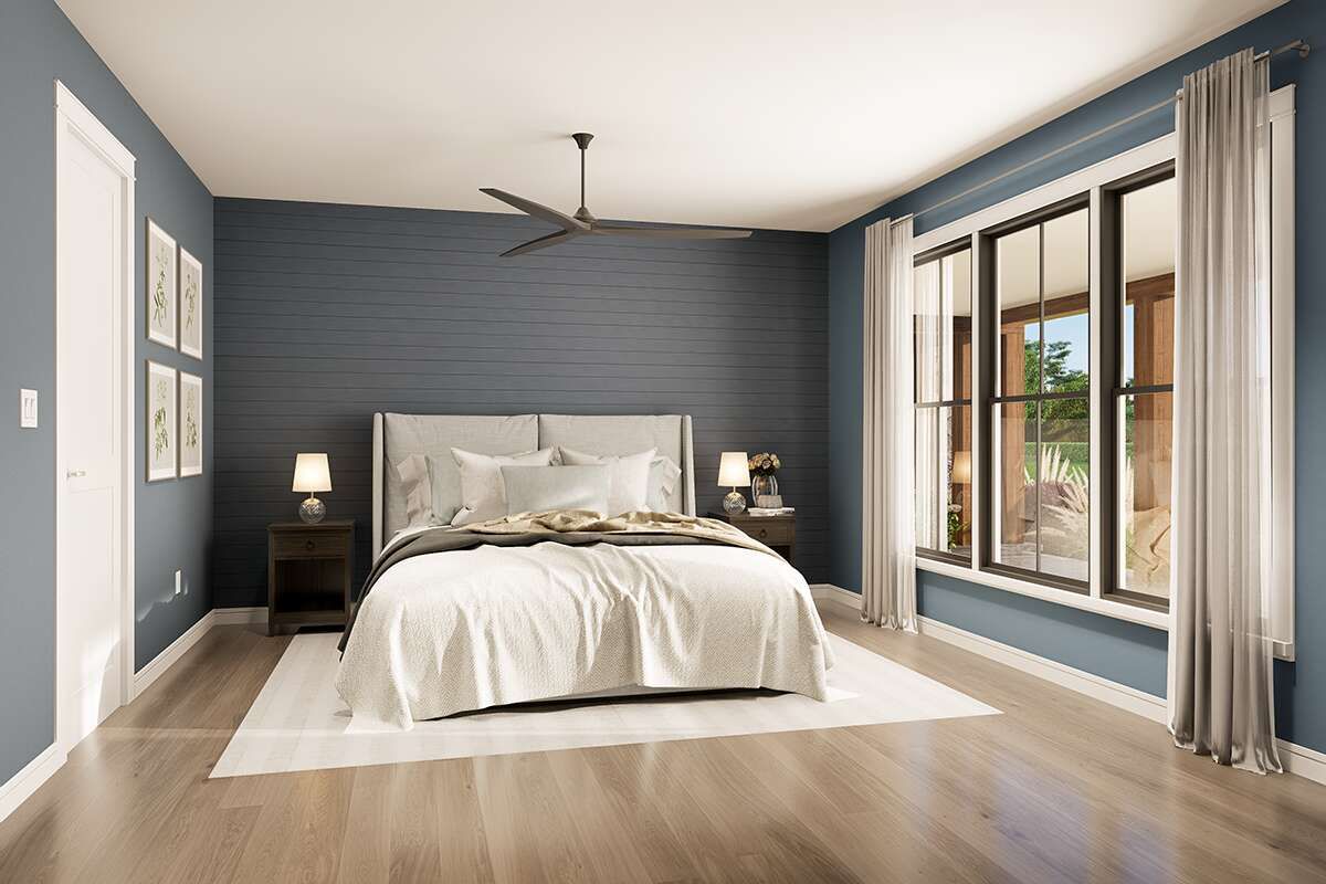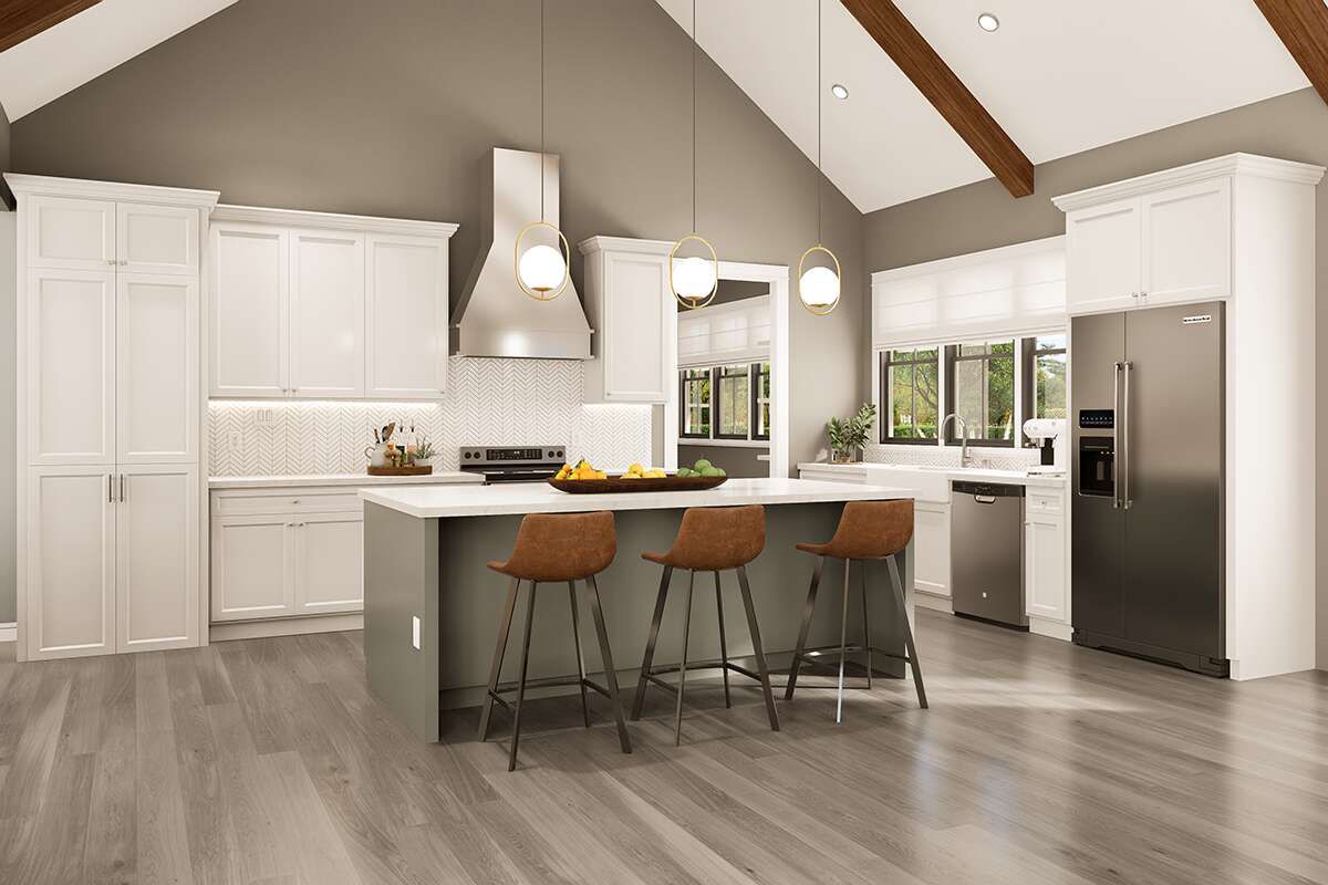 The total heated area is approximately 2,308 square feet, laid out on a single level to promote easy accessibility and efficient circulation throughout all living spaces. Standard wood framing and conventional roof structures support strong build performance and long-lasting durability. Foundation options — including slab, crawlspace, or basement — may be chosen based on site conditions, local preferences, and budget considerations.