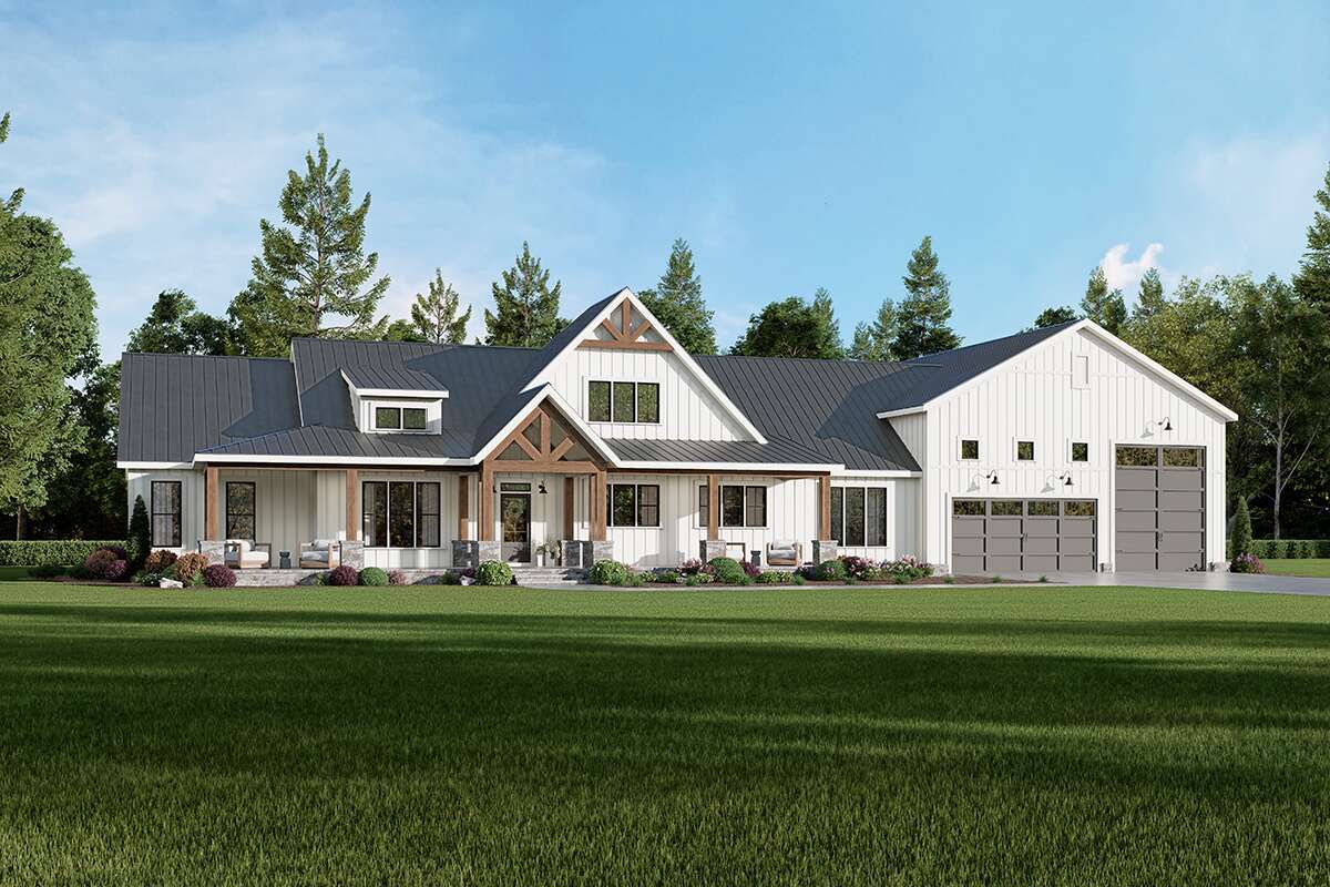 A spacious three-car garage is integrated into the design, offering generous covered parking, storage, or workshop space — a highly appreciated feature for barndominium owners who value utility and flexibility. ([houseplans.net](https://www.houseplans.net/floorplans/00900441/barndominium-plan-2308-square-feet-3-bedrooms-2.5-bathrooms))
