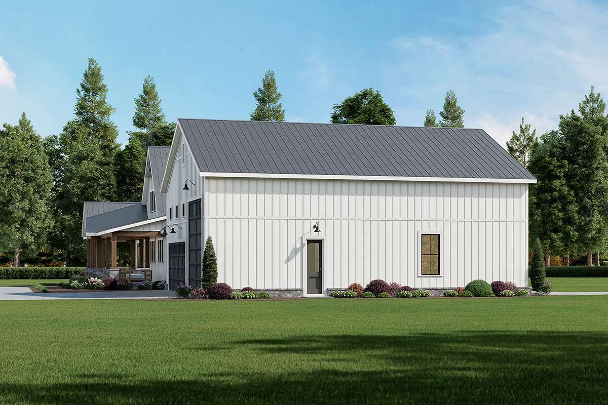 The exterior reflects classic barndominium character with a broad footprint and simple rooflines that emphasize practicality and durability. A welcoming covered porch extends outdoor living opportunities, while generous windows bring natural light into the interior spaces. Durable siding and roof materials help this design stand up to weather and time, making it a strong choice for rural landscapes or larger lots. ([houseplans.net](https://www.houseplans.net/floorplans/00900441/barndominium-plan-2308-square-feet-3-bedrooms-2.5-bathrooms))
