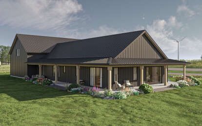 The exterior showcases classic barndominium styling with a broad footprint and vertical siding that emphasizes simplicity and durability. Clean rooflines, oversized windows, and a welcoming covered porch create both visual interest and curb appeal. This aesthetic suits a variety of settings — from rural acreage to large residential lots — and conveys a relaxed yet purposeful design language. ([houseplans.net](https://www.houseplans.net/floorplans/96301085/barndominium-plan-2436-square-feet-3-bedrooms-2.5-bathrooms))