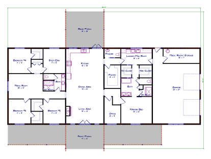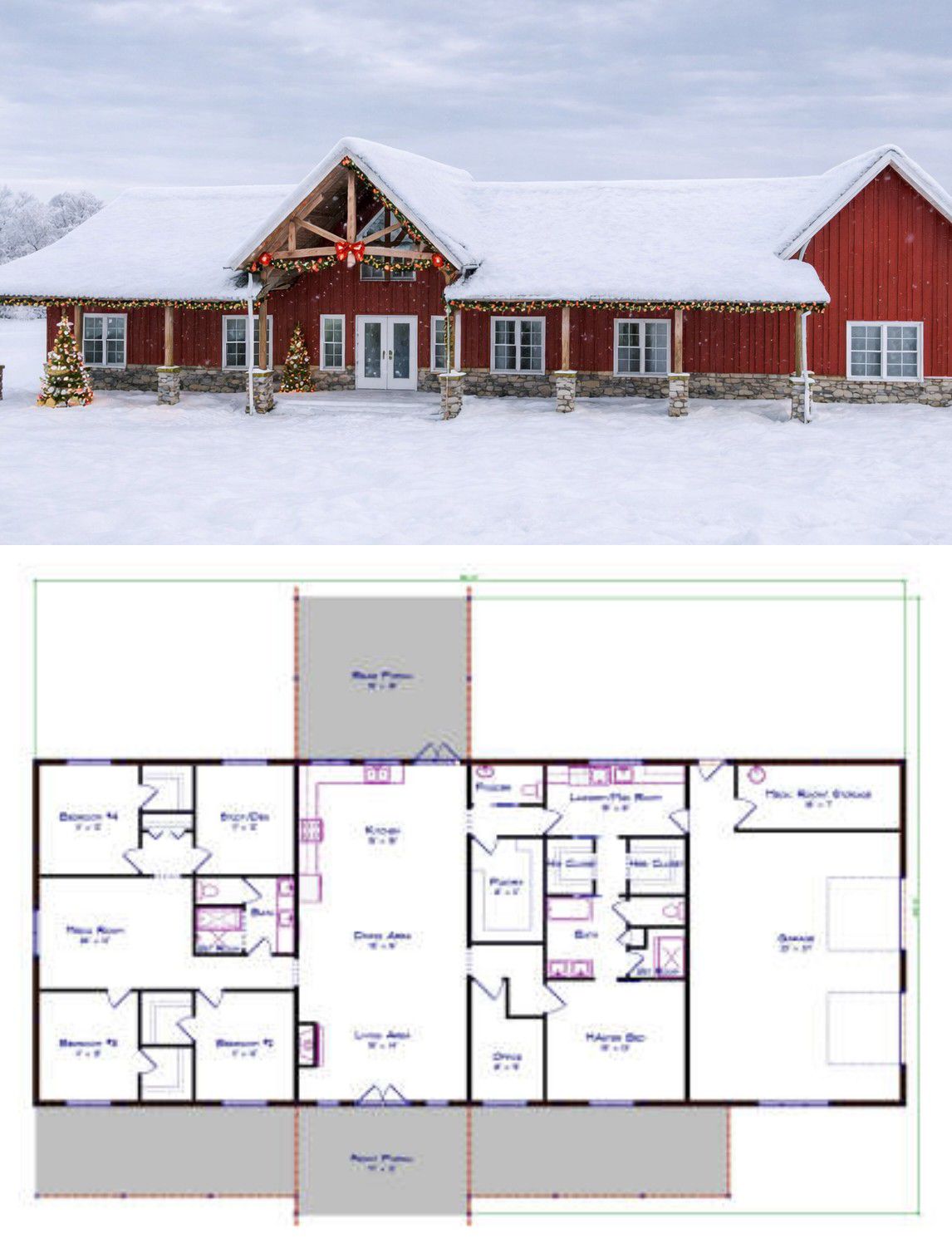 This expansive barndominium plan provides a striking combination of residential comfort and versatile barn-style architecture across approximately 2,746 square feet of heated living space. With four bedrooms, two full bathrooms, one half-bath, and an attached two-car garage, this plan is ideal for those seeking spacious living in a single-story layout with abundant outdoor areas and flexible functional spaces. 0