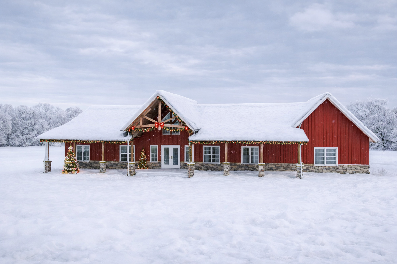 The attached two-car garage provides direct access to the home, enhancing everyday convenience and sheltering vehicles from the elements. The overall roofline includes a pronounced pitch that balances functional rain runoff with classic barn-inspired form. 3