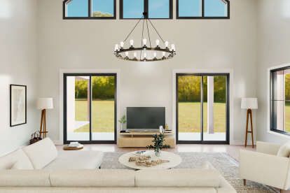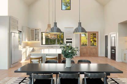 Inside, the barndominium plan emphasizes open, flexible spaces that accommodate daily life, gatherings, and shared activities. The thoughtful layout balances communal areas with private retreats to maximize comfort and usability.4