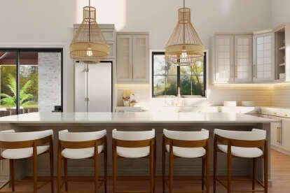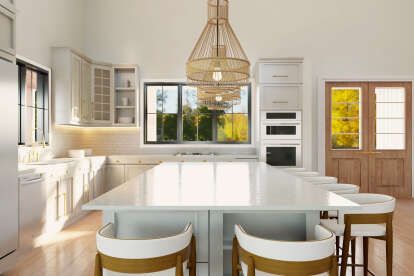 The kitchen includes generous counter and cabinet space to support daily meal preparation and casual dining. An island or peninsula provides additional workspace and could serve as a gathering spot during casual meals or social occasions.6