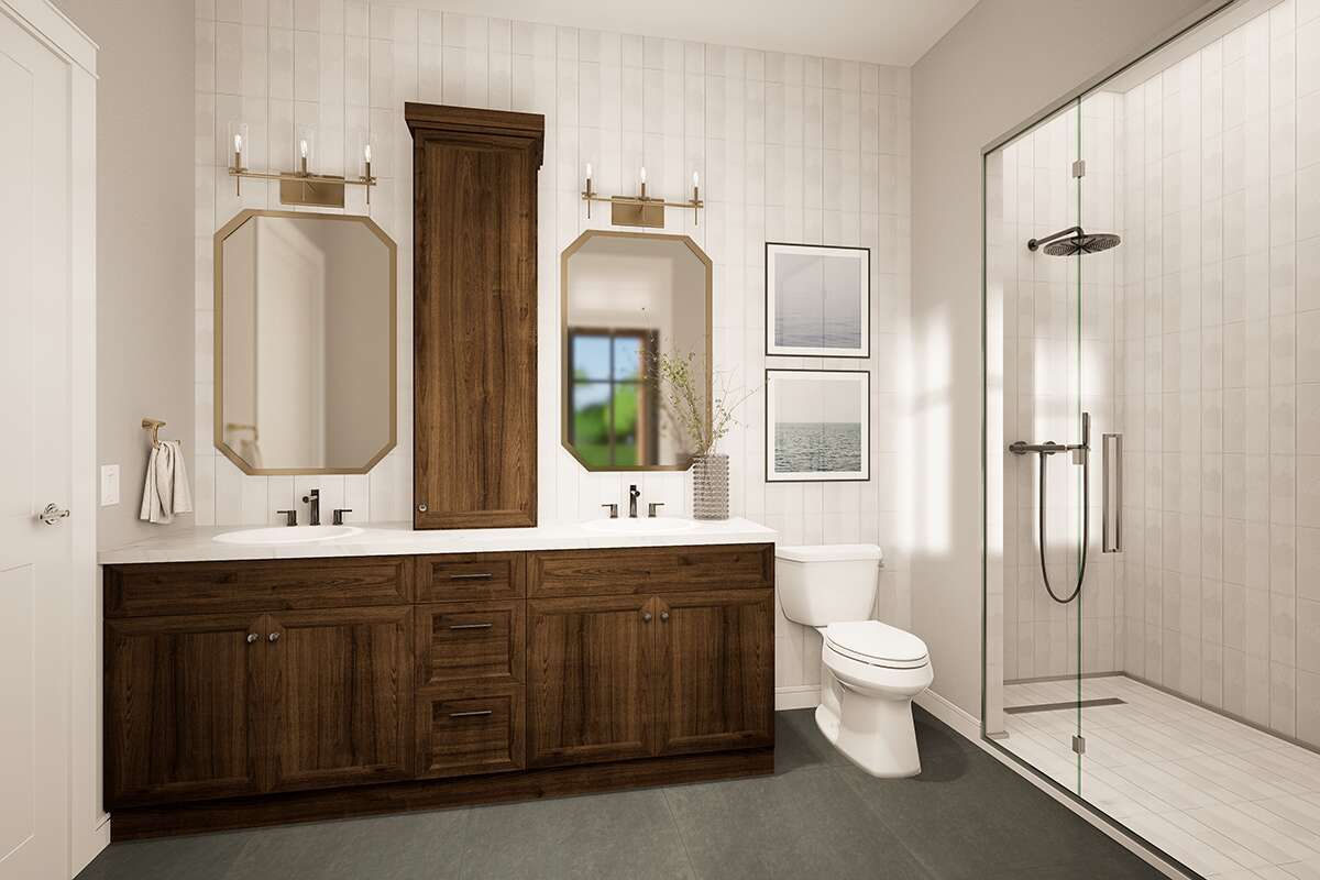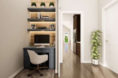 In addition to the living and sleeping areas, this plan includes essential functional spaces that support everyday ease. 20 A dedicated laundry area keeps chores out of sight yet close at hand, and interior transitions from room to room are smooth and intuitive. 21 Mudroom-style space off the porch helps keep outdoor gear and shoes organized before entering the main living areas. 22