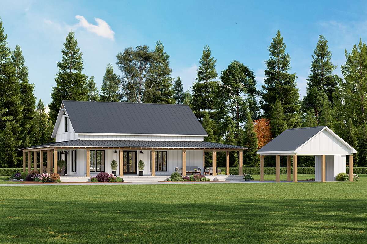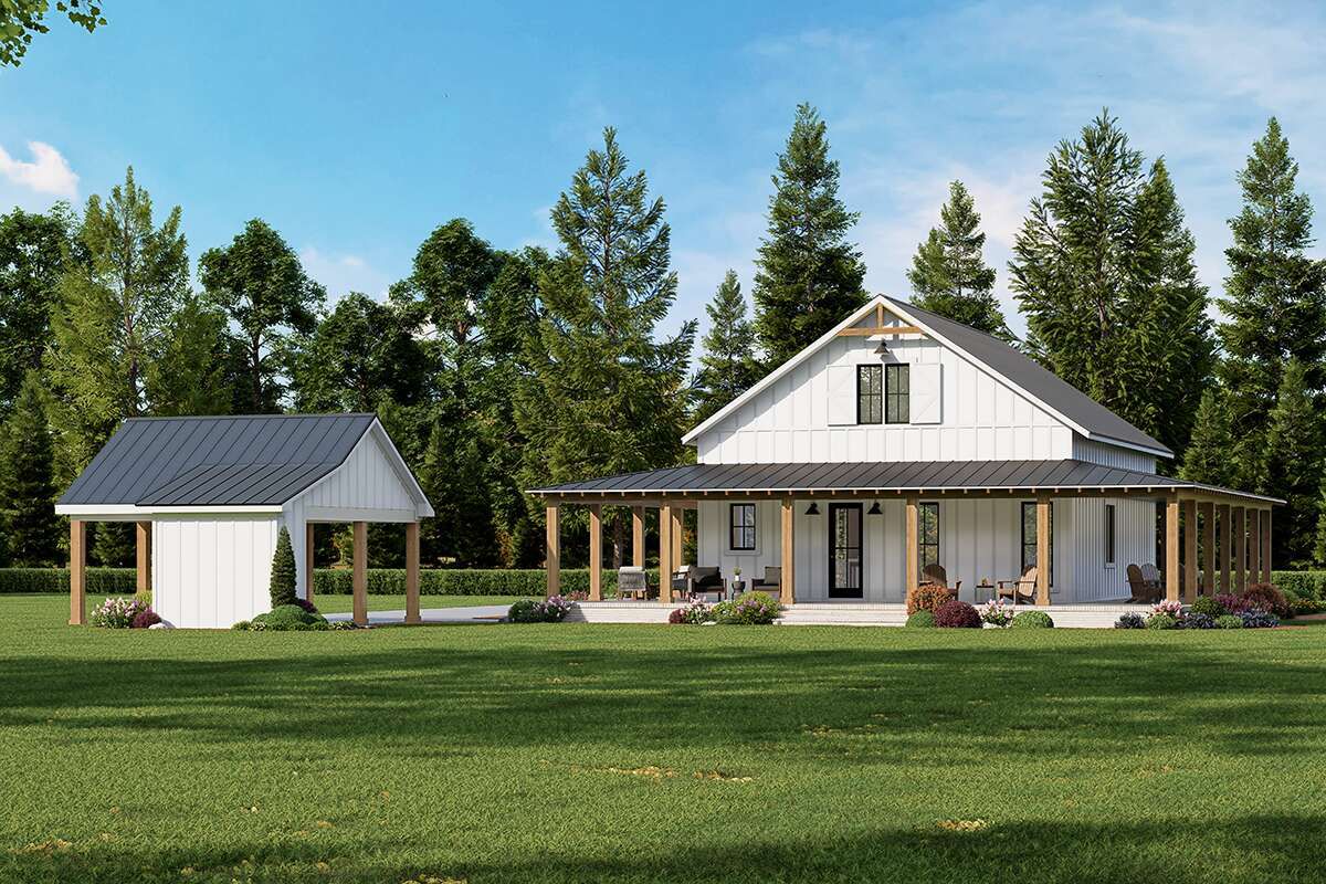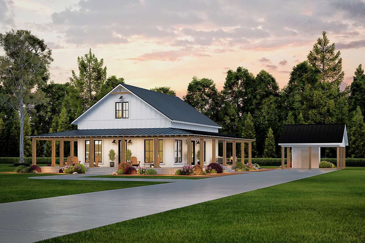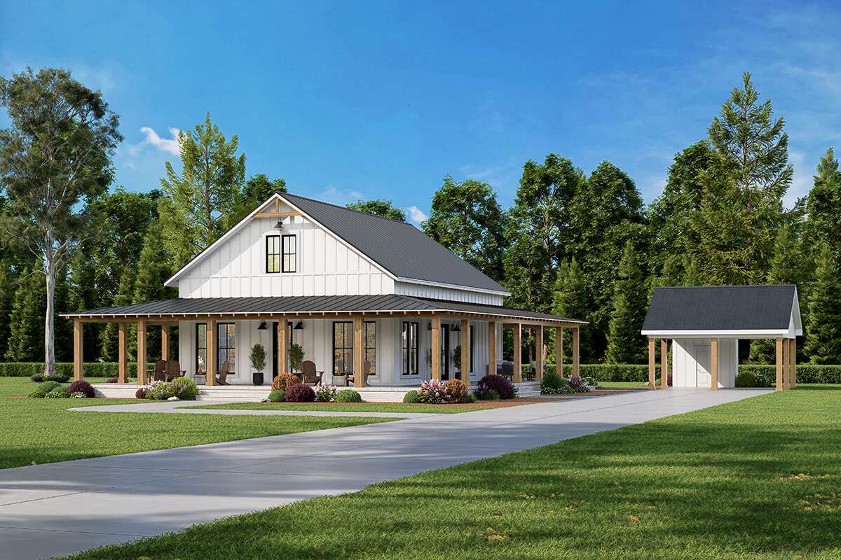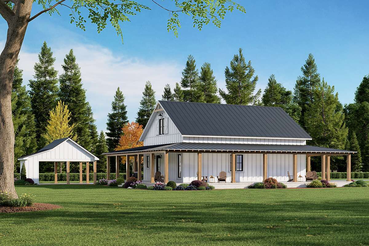 Modern Farmhouse Plan with Large Wrap-Around Porch and Rear Entry Garage