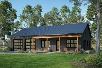 This barndominium plan offers approximately 1,260 sq ft of comfortable and versatile living space designed around an open, functional layout. With 2 bedrooms and 2 full bathrooms, this single-level home blends rustic barn-style character with contemporary farmhouse sensibilities. The spacious interior, generous porch areas, and efficient plan make it perfect for full-time living, a relaxed retreat, or flexible rural or suburban lifestyle. 0