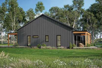 This barndominium plan combines rustic charm with smart, modern planning. Its open interior, wraparound porch, and flexible bedroom zones make it ideal for people seeking both comfort and efficient design. Whether you’re building a primary residence, weekend retreat, or rental home, the thoughtful layout and generous outdoor living areas deliver versatile, easy-to-enjoy living for years to come.q