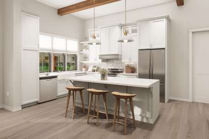 The kitchen sits conveniently within the open living zone, featuring a central island that serves as both prep space and an informal gathering spot. 7 Ample countertop area and cabinetry provide practical storage and workflow for everyday cooking, while open sightlines keep the cook engaged with the rest of the household activities. 8