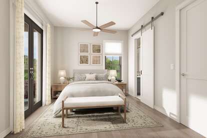 The second bedroom offers versatile space for family members, guests, or a home office. Its proximity to the shared bathroom makes it convenient for users without interrupting the privacy of the primary suite. 16 This room can adapt to changing needs over time, whether as a guest room, hobby space, or flexible work area. 17
