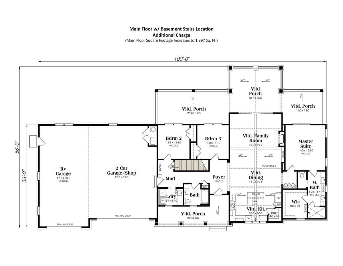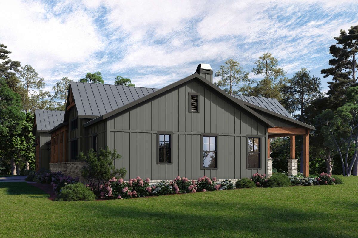 This modern barndominium plan delivers about 1,824 sq ft of comfortable, efficient living space rooted in rustic barn-style charm. It includes 3 bedrooms, 2 full bathrooms, and a substantial 3-car garage, making it perfect for families, hobbyists, or anyone who loves the idea of combining practical workspace with warm, open interior spaces. 0
