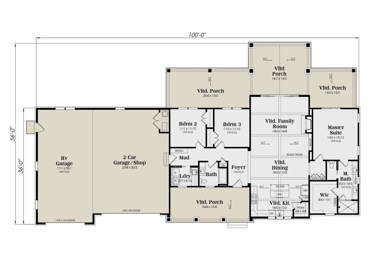 This barndominium plan blends rural charisma with modern functionality. Its generous garage/workshop area, open central living space, and well-balanced bedroom wings make it perfect for families, hobbyists, or anyone who wants residential comfort with room for tools, toys, and practical needs. The design’s indoor-outdoor flow, thoughtful layout, and versatile spaces provide both everyday livability and long-term comfort.