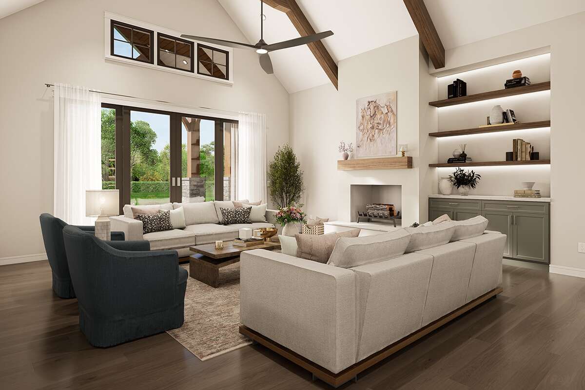 One of this plan’s standout features is the oversized 3-car garage space, which can serve as secure parking, a workshop, or storage for outdoor gear and tools. 4 The garage’s generous size and direct connection to the main living area make it a practical hub for everyday use and hobbies alike — from weekend projects to long-term DIY passions. 5