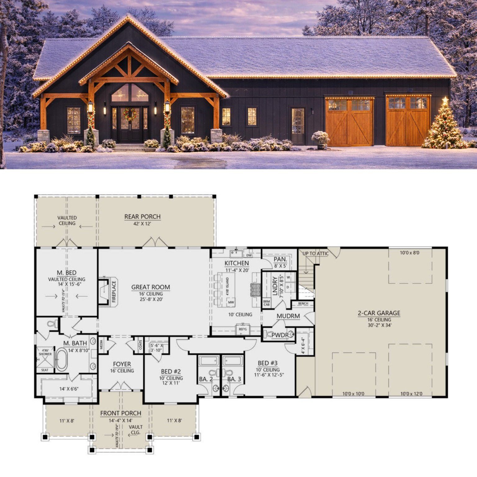 This striking barndominium plan offers approximately 2,205 sq ft of open, contemporary living designed to blend modern comforts with rustic character. With 3 bedrooms, 3 full bathrooms and 1 half bathroom, plus loft space and inviting outdoor areas, this layout is ideal for families, guests, work-from-home life, or versatile living arrangements that adapt to your lifestyle. 0
