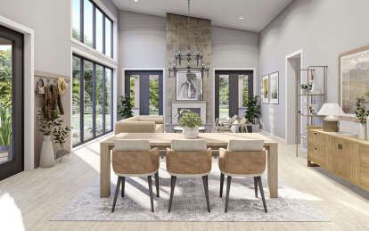 The dining area sits comfortably near the kitchen, creating an intuitive space for shared meals. Its location within the open plan makes serving and conversation natural and fluid. Windows near the dining area help draw in light and views, enhancing the space’s welcoming quality.