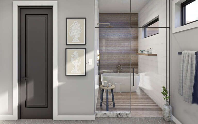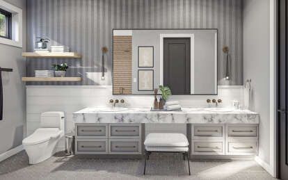 With two full bathrooms, this plan supports family routines and guest needs alike. The shared full bathroom serves the secondary bedrooms and common zones, while the primary suite bathroom remains a private space for daily comfort. Thoughtful layout minimizes traffic conflicts and enhances everyday livability.