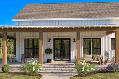 The covered front porch adds functional outdoor space that extends your living area beyond the interior walls. 4 It provides a welcoming place to relax, enjoy fresh air, and connect with neighbors or nature. 5 The exterior doors and windows link this outdoor area to the interior, encouraging indoor-outdoor flow and abundant daylight throughout the home. 6