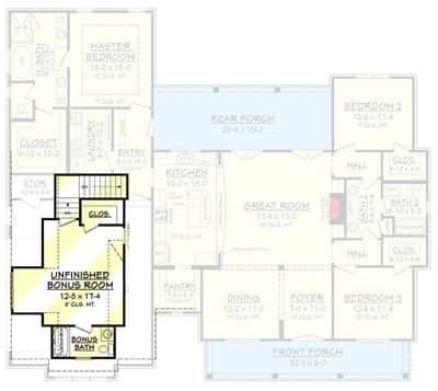 This modern farmhouse plan blends simplicity, practicality, and charm. With its modest size, flexible bonus room, and balanced layout — it’s ideal for first-time homeowners, small families, or anyone wanting comfortable, smart living without overspending. The bonus room adds future-proof potential, and the thoughtful floor plan supports everyday living, entertaining, and growth over time. Whether you’re looking for an affordable starter home or a long-term family house that adapts — this design offers strong value, comfort, and timeless farmhouse appeal.