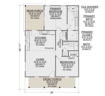 The home’s overall dimensions of approximately 30 feet by 40 feet yield a well-balanced and efficient footprint. The single-story layout simplifies daily living and accessibility. 16