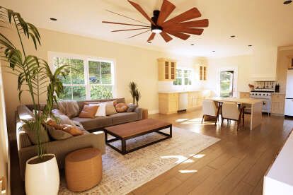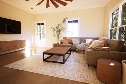 The living area flows seamlessly into the adjacent dining space and kitchen, allowing for easy interaction and shared activities. This open configuration enhances the sense of space and makes day-to-day living feel comfortable and connected. 6