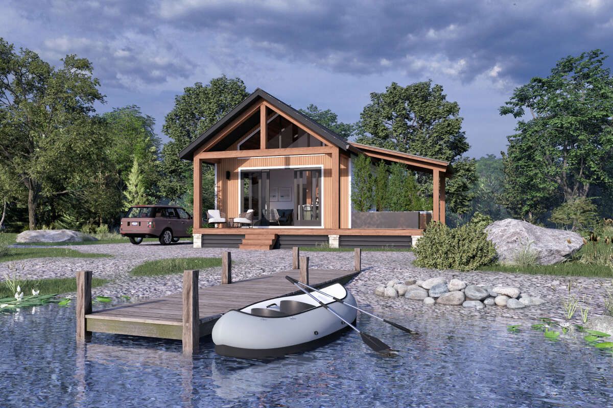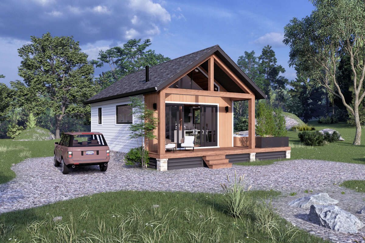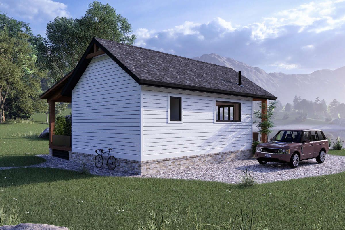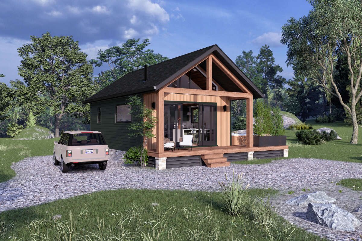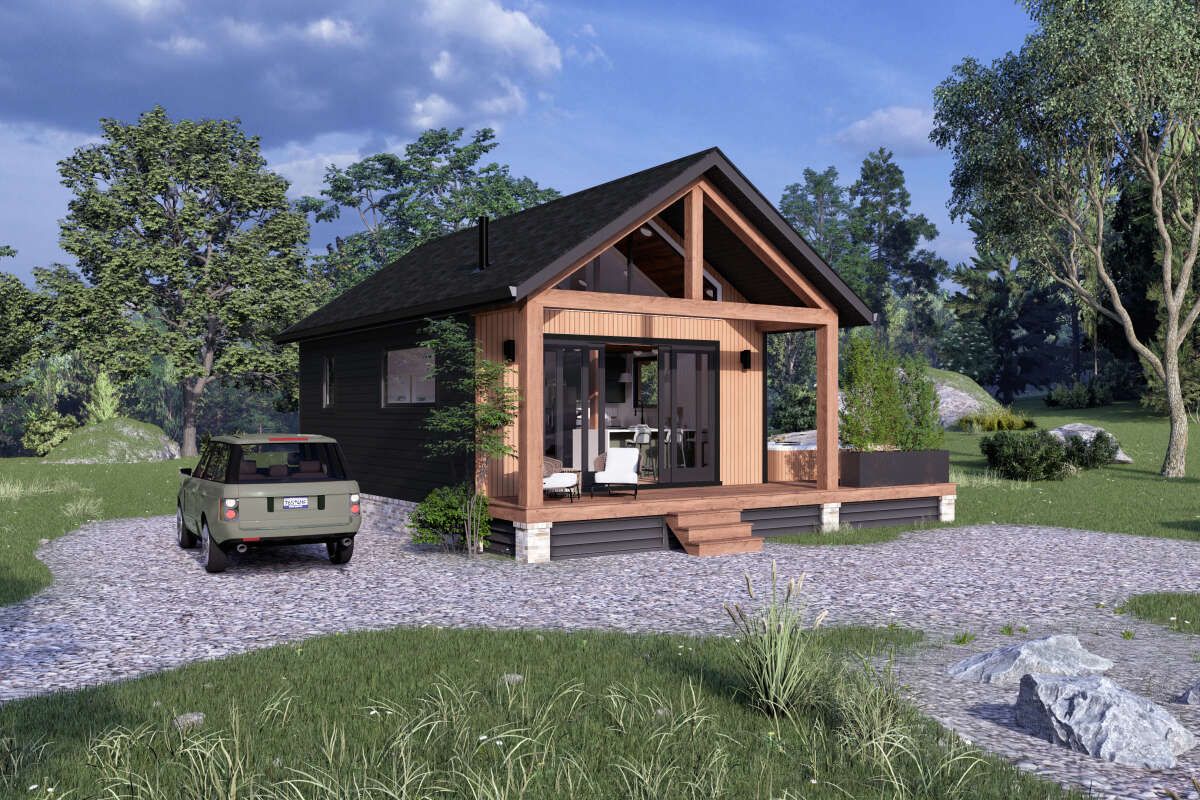 This charming cabin design offers about 560 sq ft of heated living space, proving that small can still feel incredibly comfortable when the layout is planned right. With 1 bedroom and 1 full bathroom, it’s an ideal fit for a quiet weekend retreat, a guest house, a downsized lifestyle, or even a cozy starter home for someone who loves simplicity and low maintenance. The footprint is compact, but the lifestyle feels big—because when a home is this easy to care for, you spend less time managing space and more time actually enjoying it.