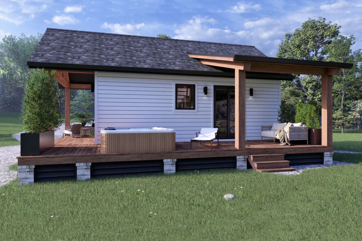 A cabin lifestyle is all about enjoying the outdoors, and this plan supports that beautifully. Even a modest porch, deck, or outdoor sitting space can become the best “room” in the house. It’s where you sip coffee in the morning, enjoy quiet evenings, or listen to rain while staying comfortably sheltered.