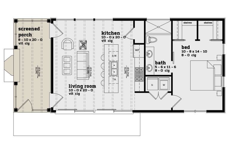 This charming cabin plan offers approximately 740 square feet of comfortable living space with a simple, efficient layout featuring one bedroom and one full bathroom. Designed to capture classic cabin character while maximizing usable space, this plan is ideal for a cozy primary residence, vacation getaway, or guest home. 0